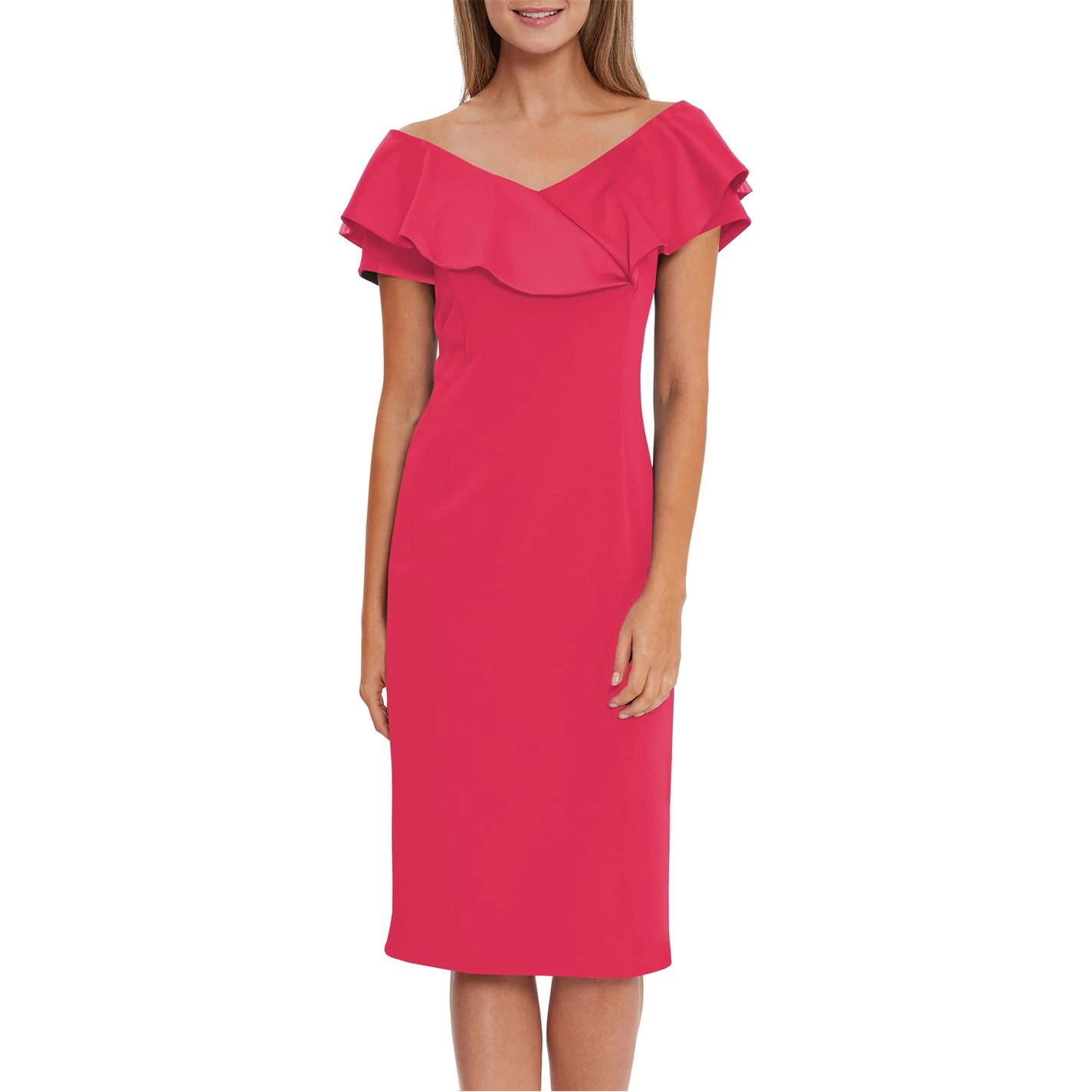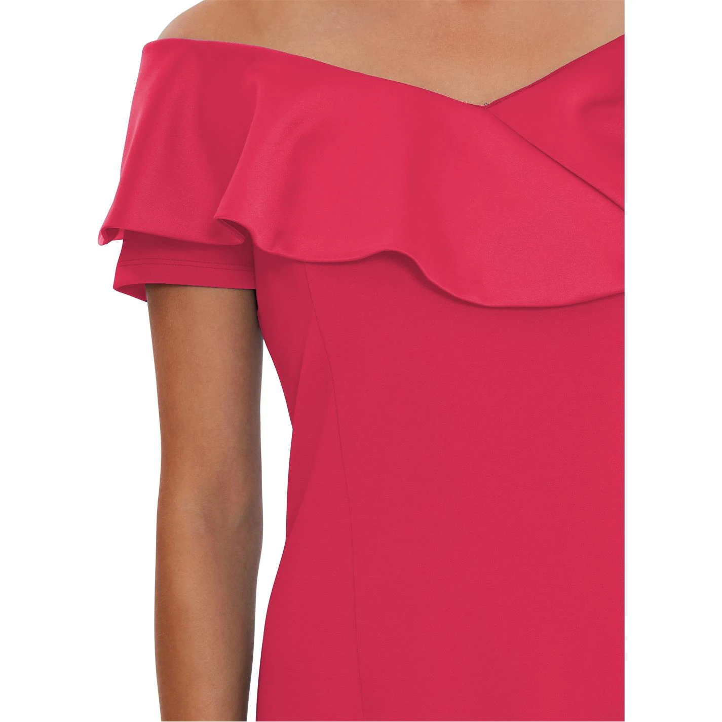Look stunning in this beautiful Gina Bacconi dress. Fashioned from a soft stretch crepe.The dress features a sultry off the shoulder satin neckline for a touch of elegance. The dress is fully lined and is fastened with a concealed back zip and hook and eye detailing.