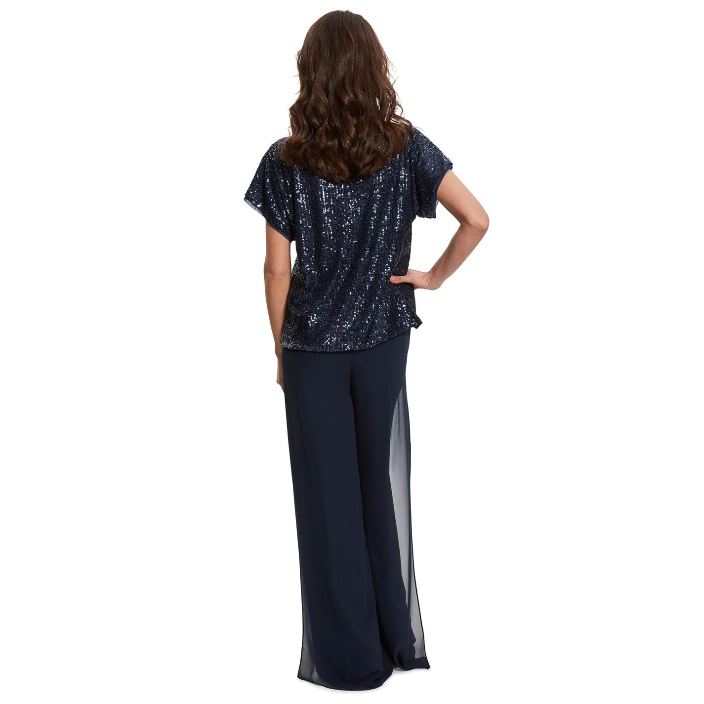 Feel classy and chic in this stretch sequin top by Gina Bacconi. It features all over sequin detailing, a round neckline and short sleeves.Perfect to wear for an elegant evening or special occasion.